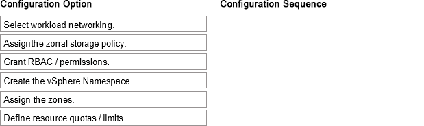 Drag and drop the six actions into the correct order from Configuration Option list on the left and place them Into the Configuration Sequence on the right. (Choose six.)