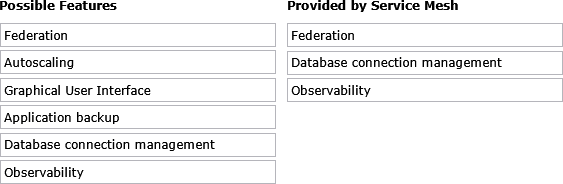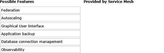 9.Drag and drop the three features into the correct order from Possible Features list on the left and place them into the Provided by Service Mesh on the right side. (Choose three.)